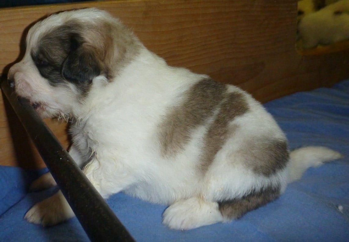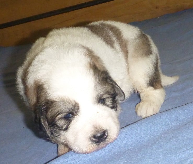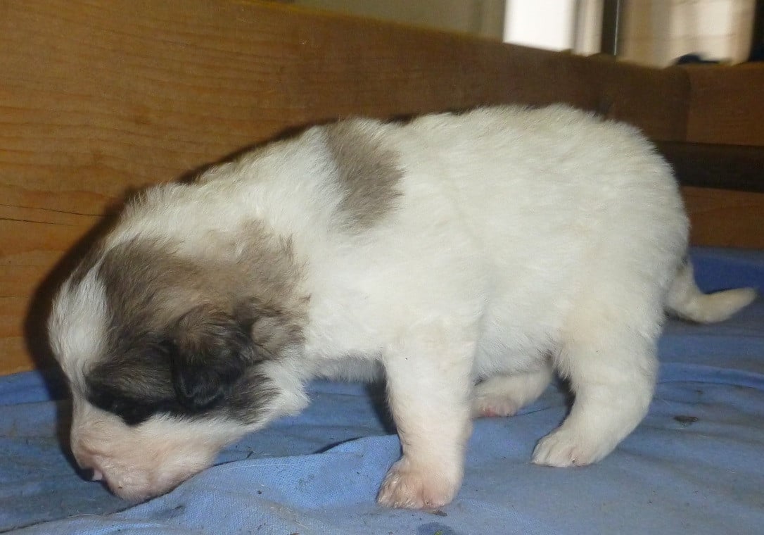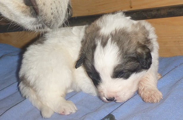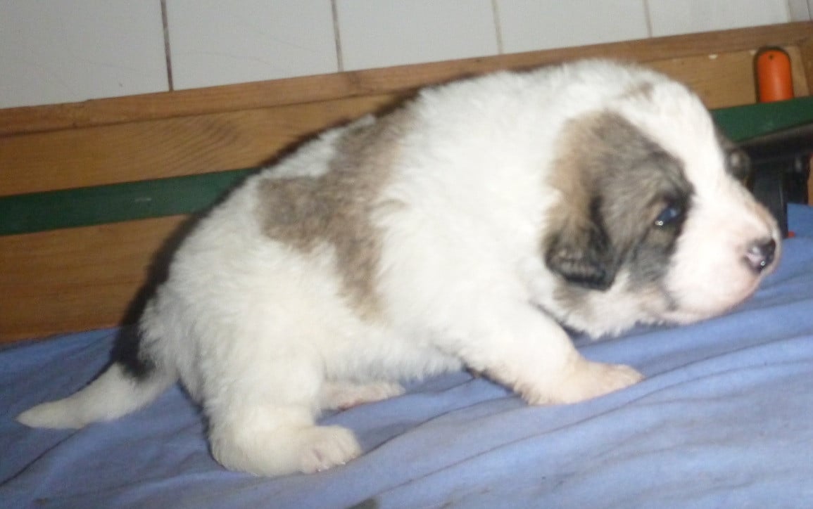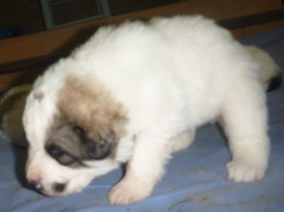 Notre belle et douce Nounak veille assidument et tendrement sur ses 5 chiots.
