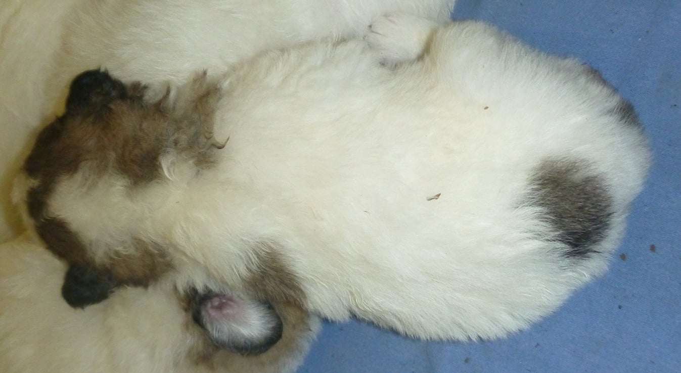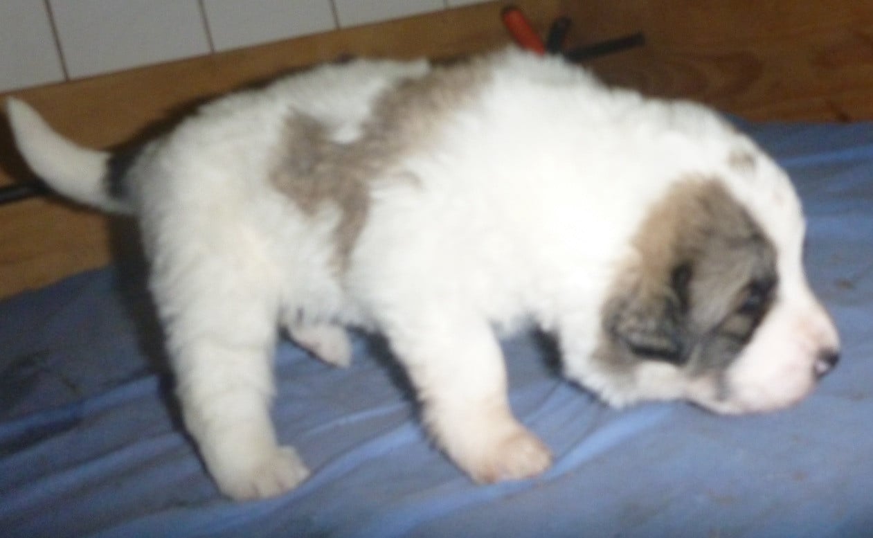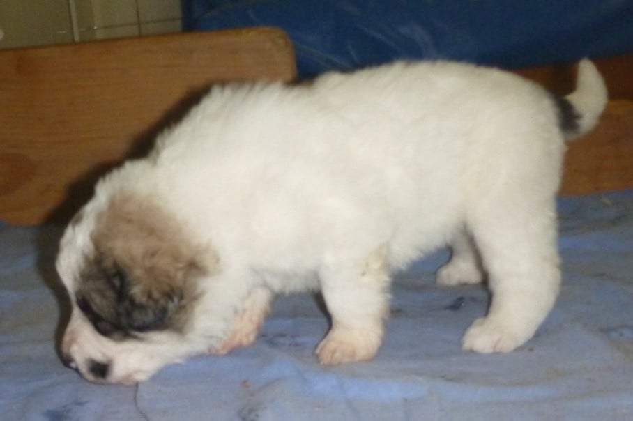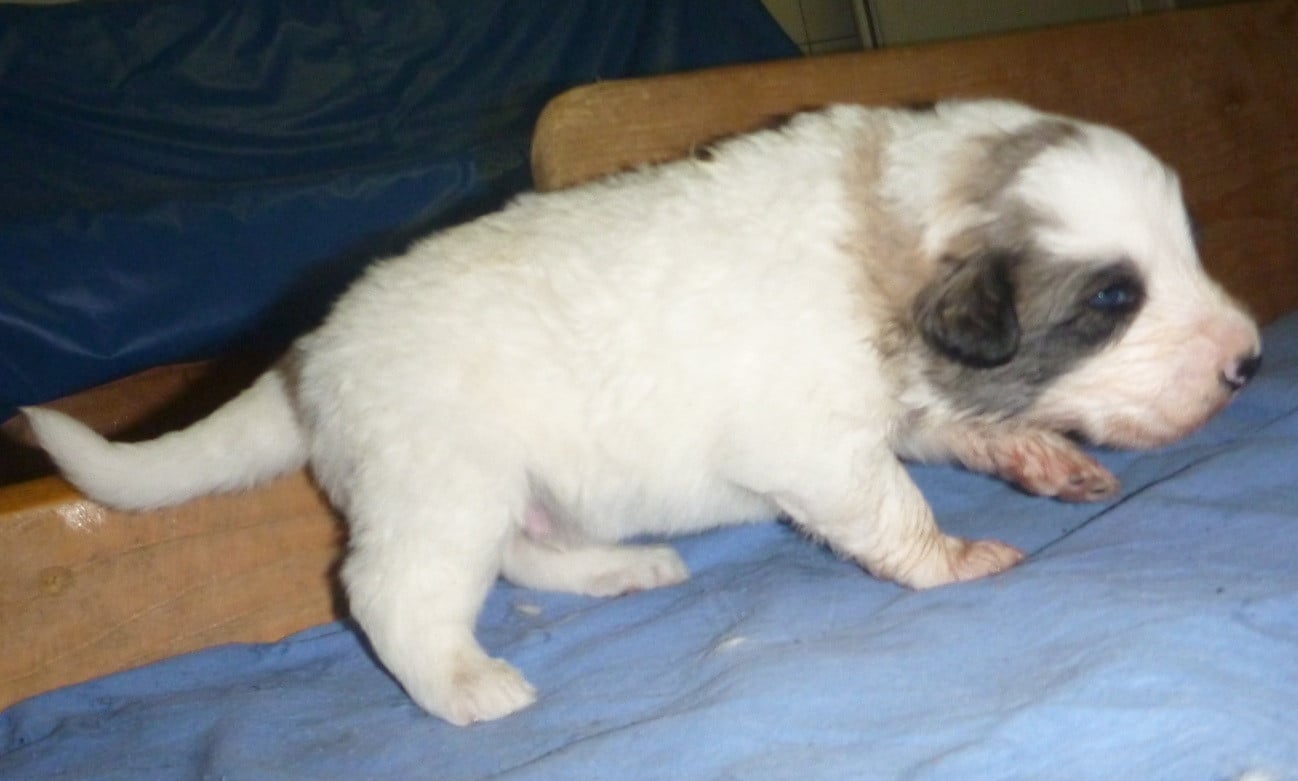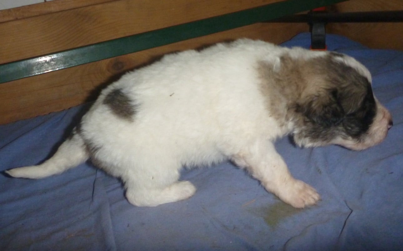 Notre belle et douce Nounak veille assidument et tendrement sur ses 5 chiots.